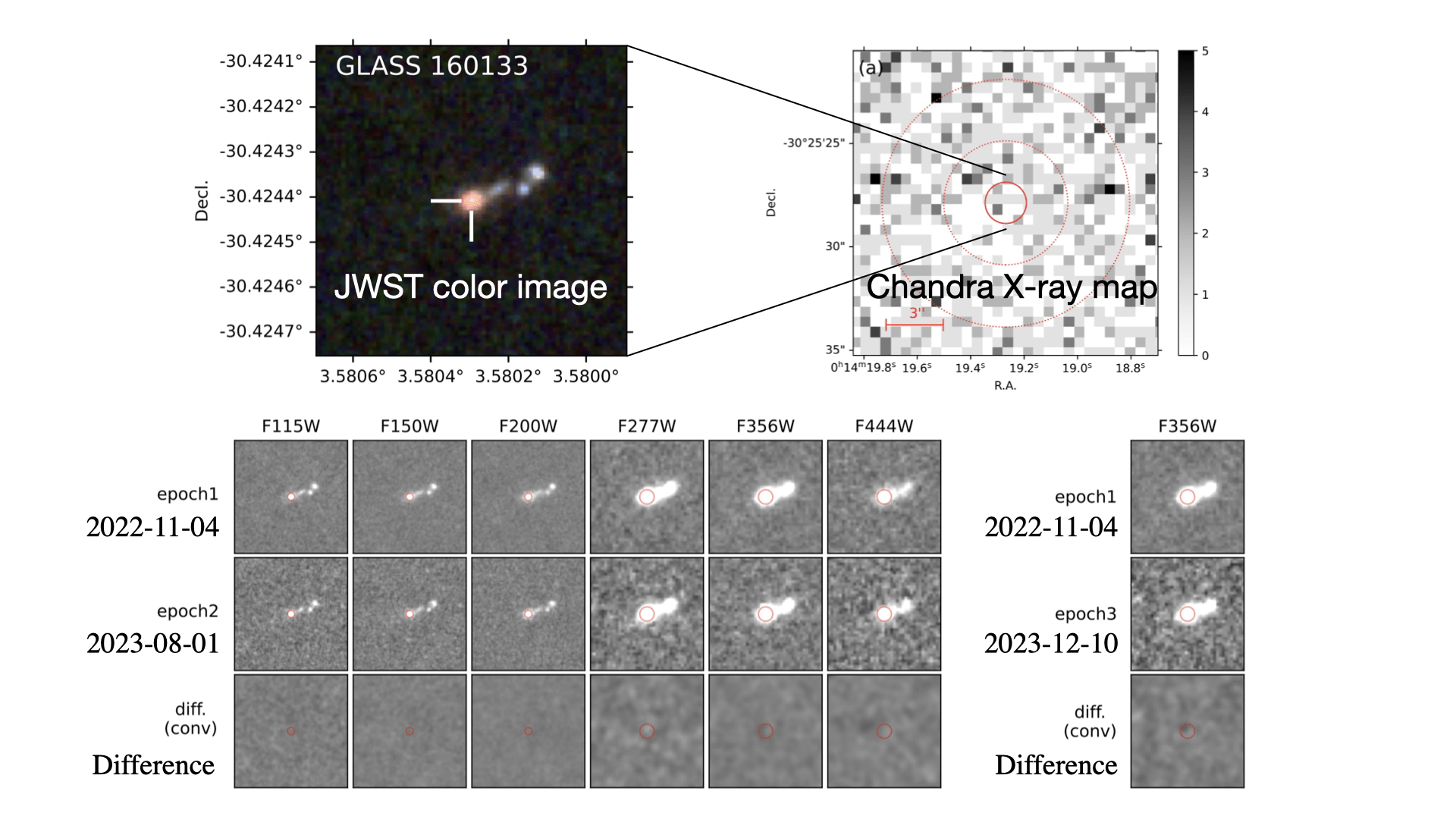 A research team led by Dr. Mitsuru Kokubo (NAOJ Fellow, National Astronomical Observatory of Japan) and Dr. Yuichi Harikane (Assistant Professor, Institute for Cosmic Ray Research, The University of Tokyo) set out to test the AGN hypothesis directly. By combining multi-epoch JWST/NIRCam imaging with extremely deep Chandra X-ray observations, they searched for key observational signatures that must be present if these sources indeed harbor AGNs. Specifically, AGNs typically show rapid ultraviolet–optical variability originating from the accretion disk, as well as strong X-ray emission from the innermost disk regions.
